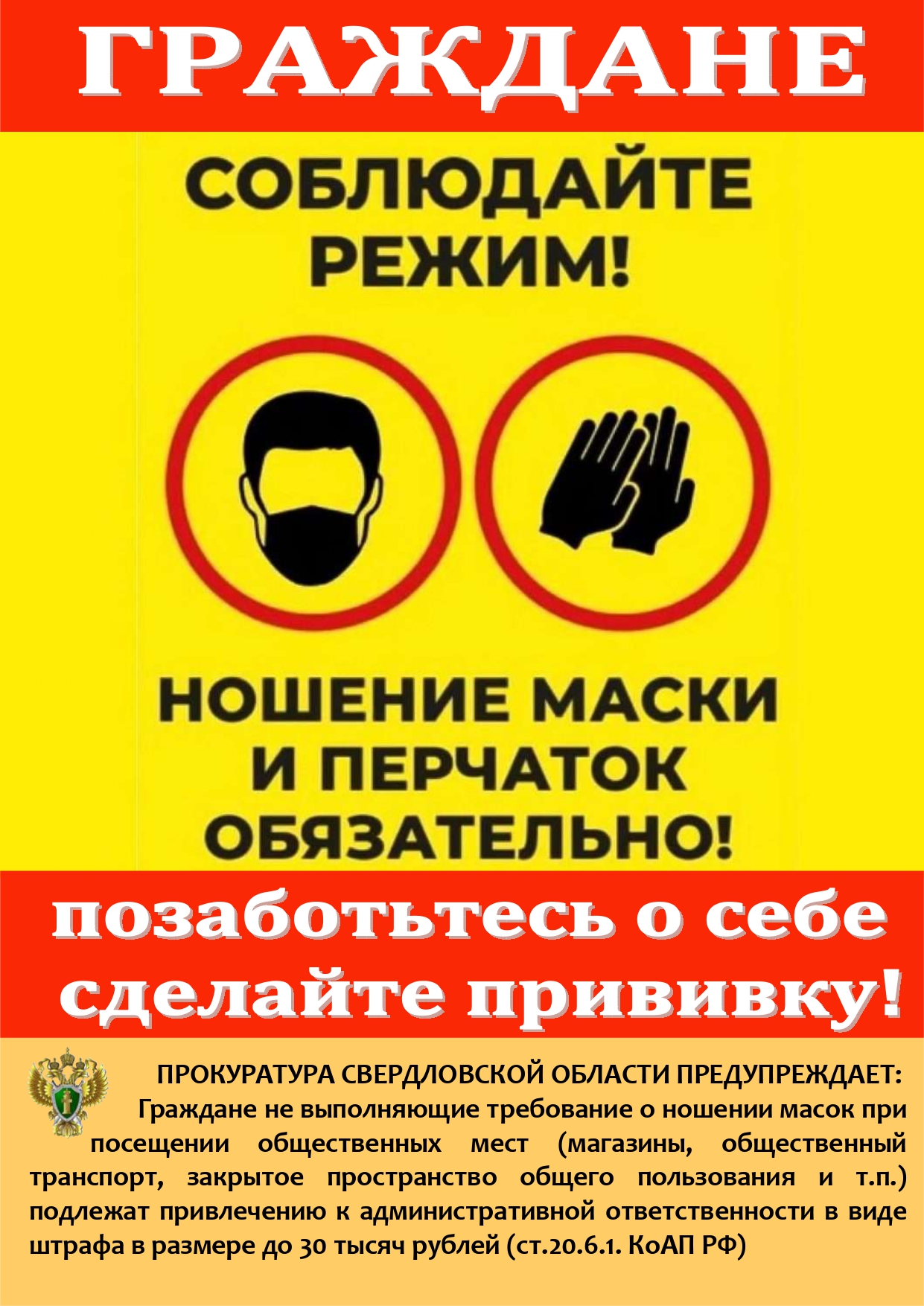 В связи с ухудшением ситуации в отдельных регионах РФ, в частности в Свердловской области, связанной с распространением COVID 19 и ростом заболевших, напоминаю, что коронавирусная инфекция входит в перечень заболеваний, представляющих опасность для окружающих (Постановление Правительства РФ от 31.01.2020 № 66). В такой ситуации необходимо соблюдать определённые правила поведения и применять меры индивидуальной профилактики, в частности, носить маску и использовать перчатки, а также учесть последствия отказа от вакцинации (высокий риск заражения себя и окружающих, тяжелые последствия для здоровья).