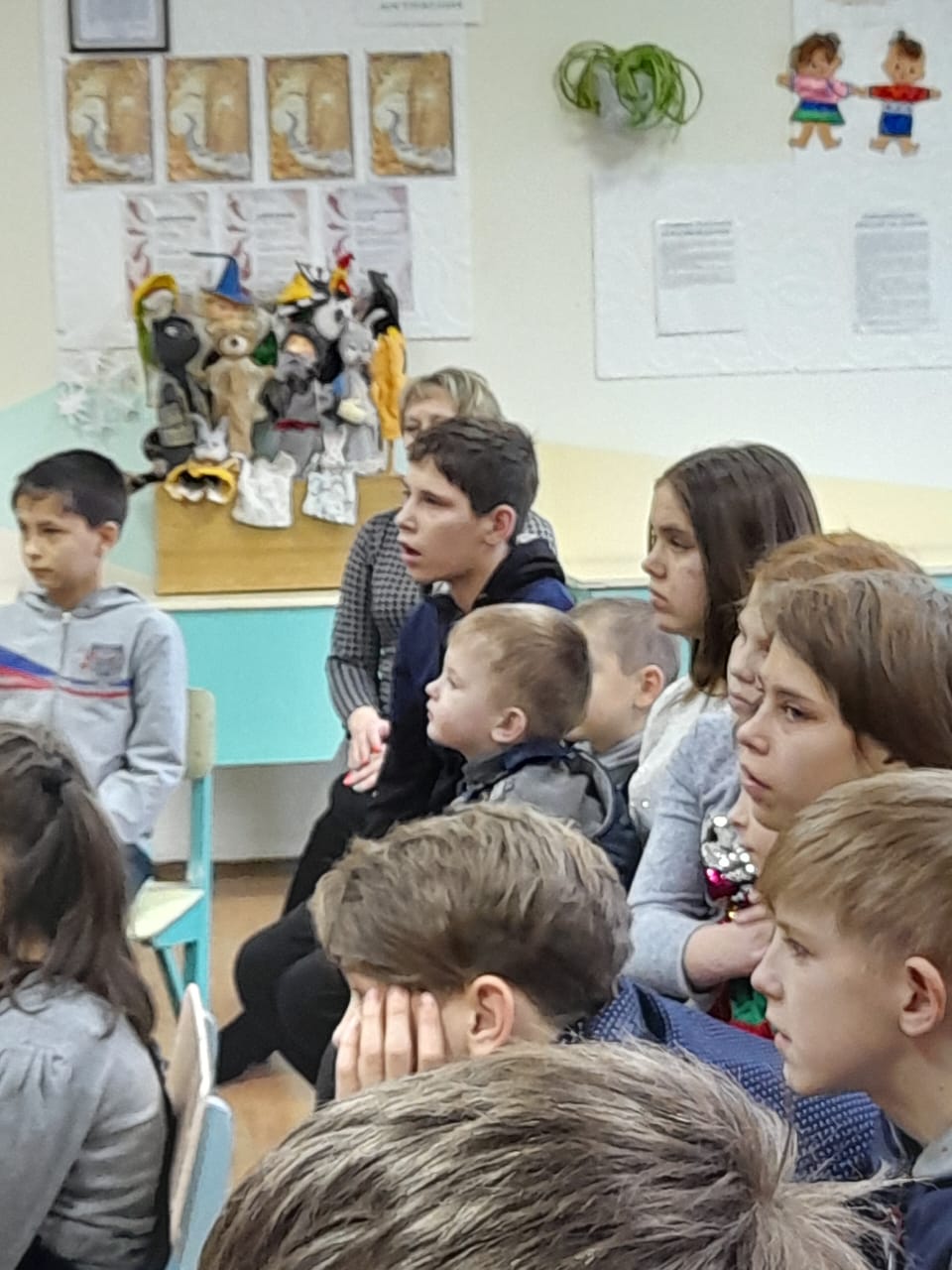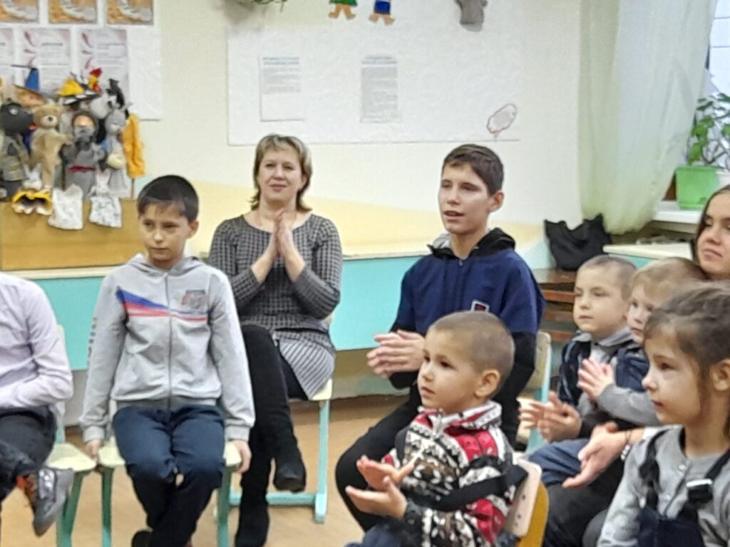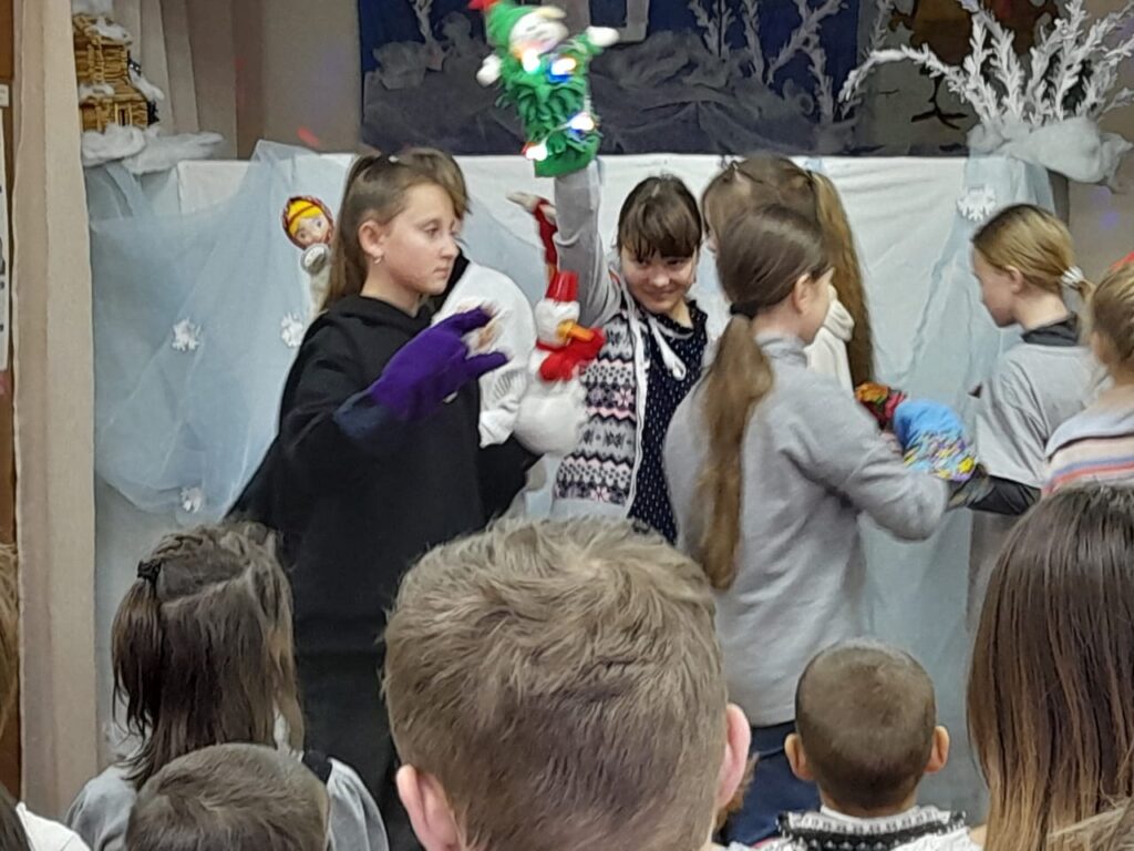 Благодаря педагогу и артистам — обучающимся творческой группы, которые занимаются в объединении уже пятый год, кабинет для занятий объединения ненадолго превратился в зрительный зал кукольного театра. Юным зрителям – воспитанникам детского дома была показана постановка «Новогодняя сказка».