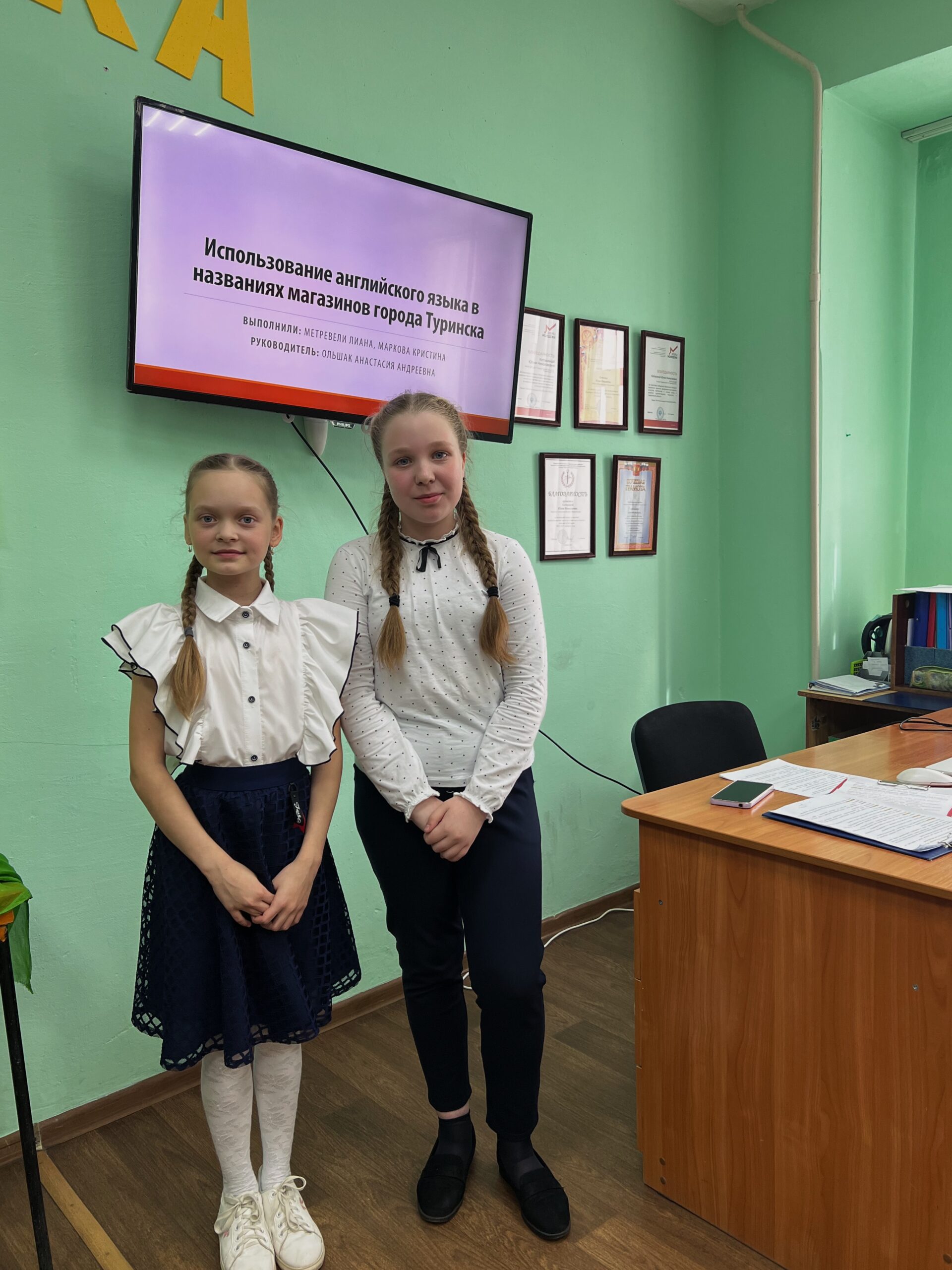 — “Использование английского языка в названиях магазинов города Туринска”, Метревели Лиана и Маркова Кристина, объединение “Путешествуем с английским”, руководитель Ольшак Анастасия Андреевна.