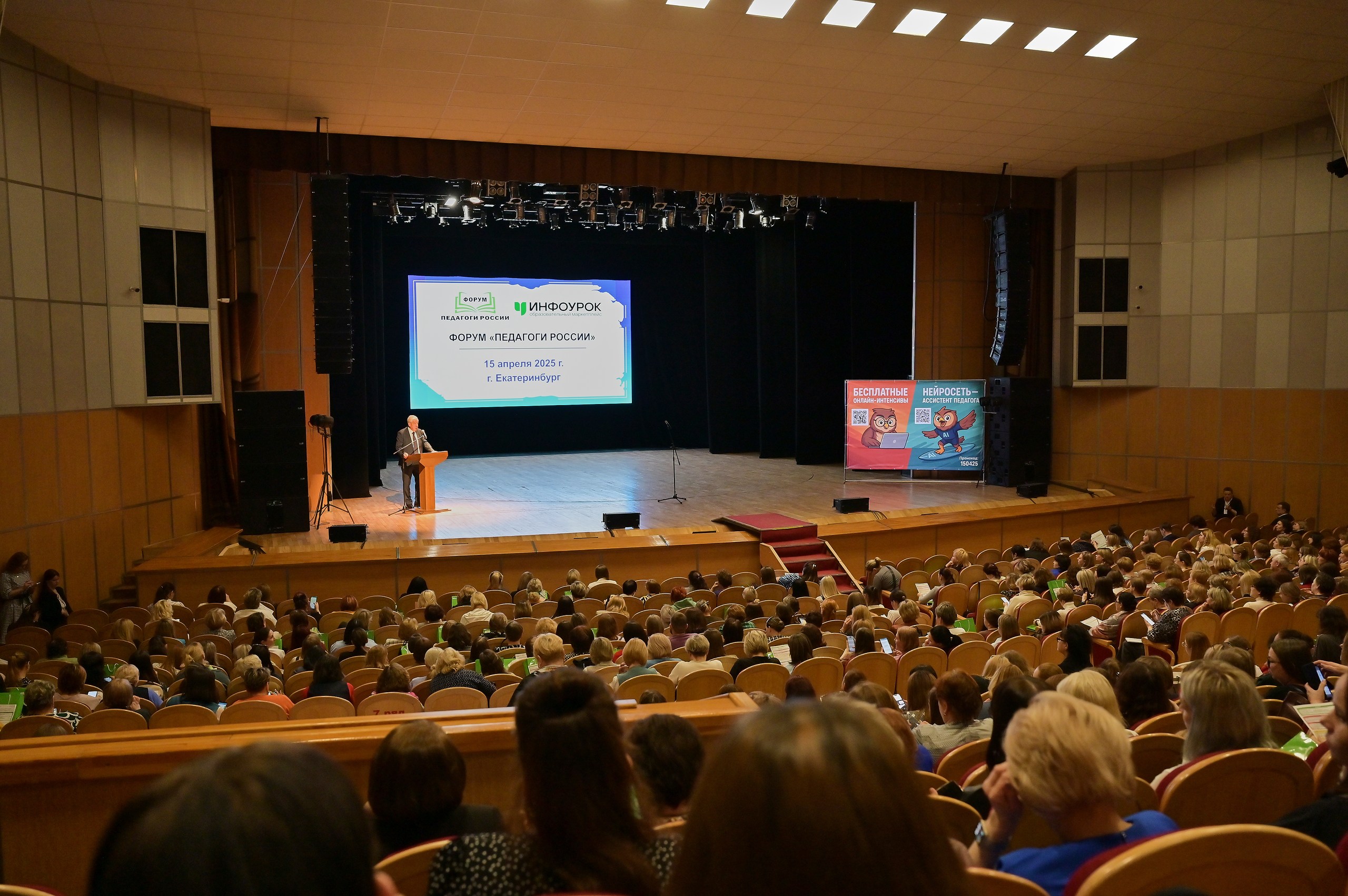 15 апреля 2025 года в Екатеринбурге на площадке Дворца молодёжи прошёл Всероссийский очный форум «Педагоги России» для руководителей, педагогов и активных родителей. В форуме приняли участие более пяти тысяч представителей педагогического сообщества.