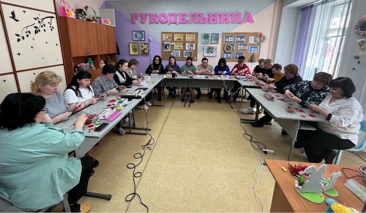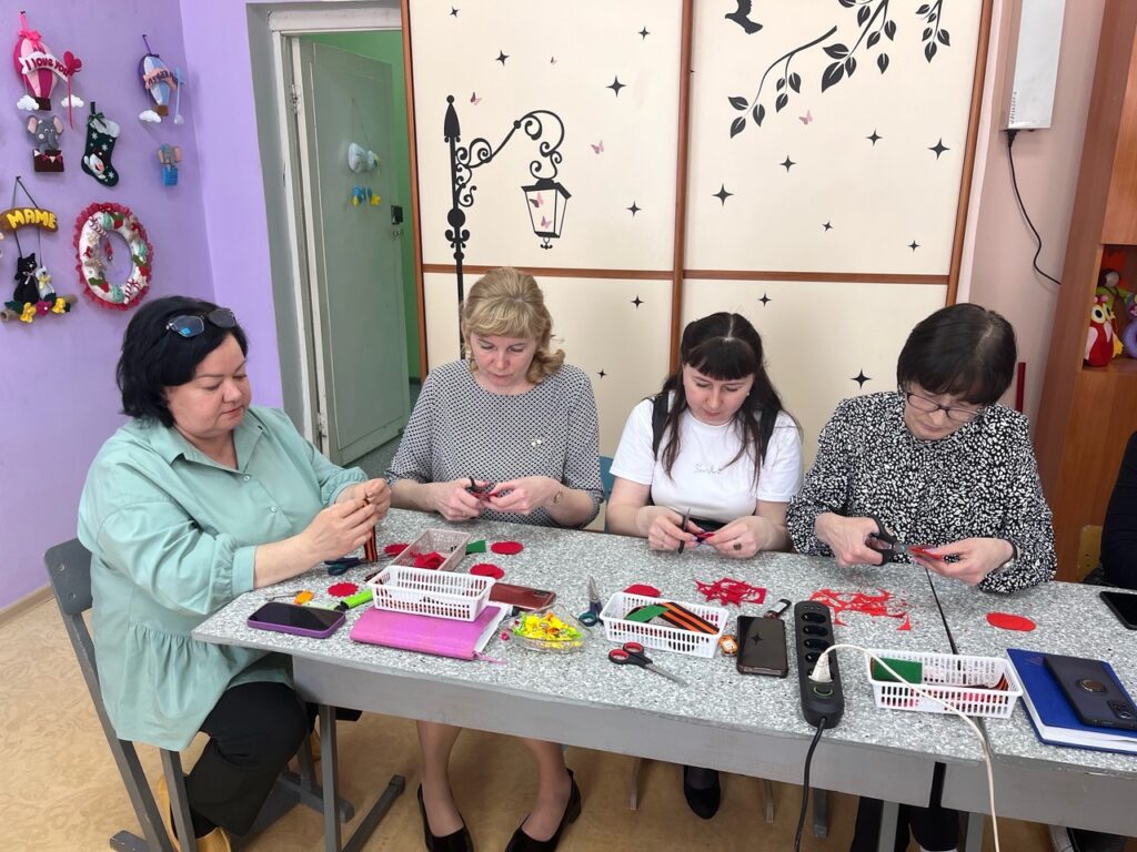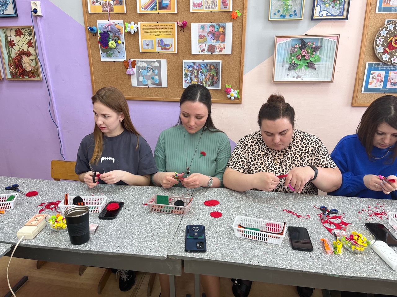 Также участники единого методического дня посетили мастер-класс по изготовлению броши из фетра «Георгиевская лента с гвоздикой», который для педагогов провела Ирина Александровна Матакова, руководитель объединения «Рукодельница».