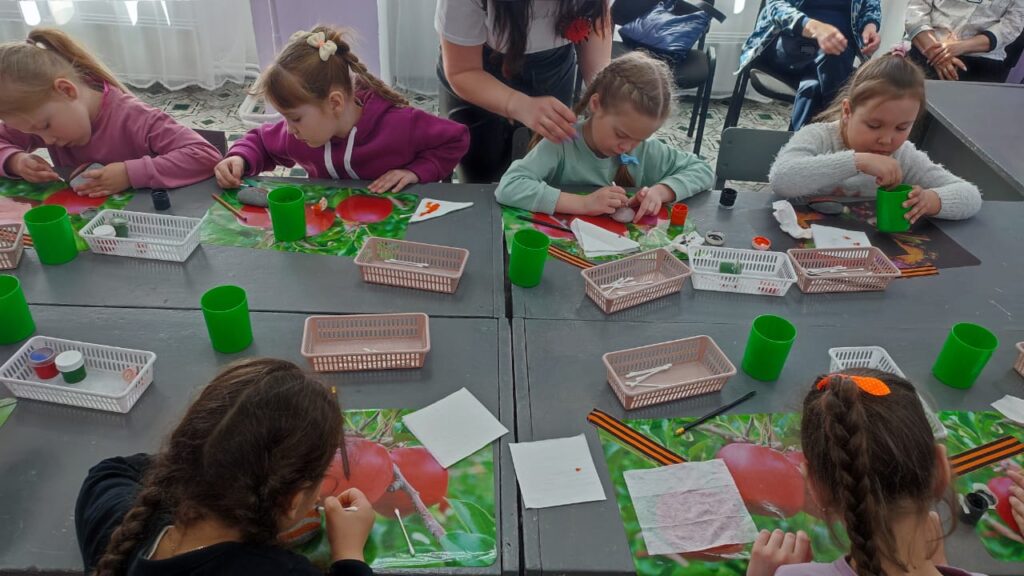 В продолжении единого методического дня Ирина Анатольевна Малюкова (руководитель объединения «Кудесница») провела занятие с дошколятами – рисование на камушках «Георгиевская ленточка», а Сергей Владимирович Семухин представил занятие по легоконструированию на тему «Парад Победы».